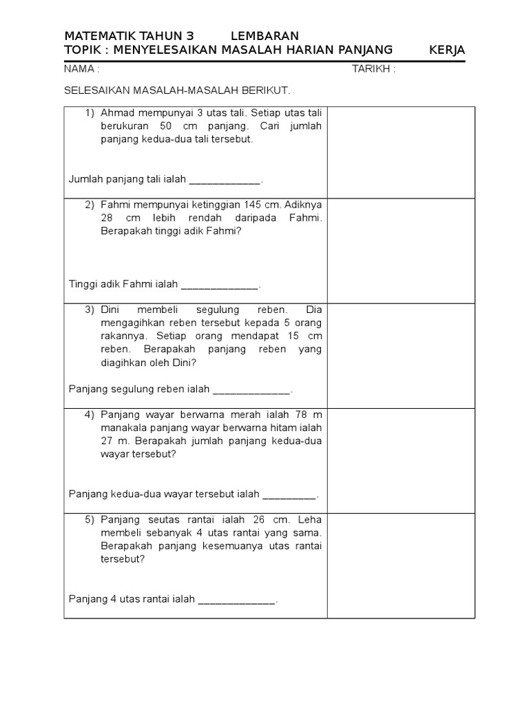 Lembaran Kerja Menyelesaikan Masalah Harian Panjang Pdf